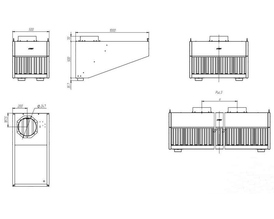 Зонт вытяжной Atesy второго поколения серии "бюджет-2" (козырьковый тип) из оцинкованной стали. Все кромки зонтов имеют подгиб, что полностью исключает получение травмы персоналом при эксплуатации и санитарной обработке изделий.