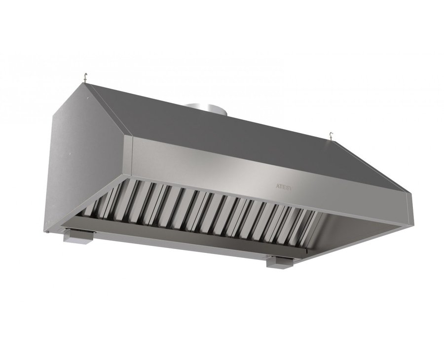 Зонт вытяжной Atesy второго поколения серии "стандарт-1" (колпаковый тип) из нержавеющей стали AISI430. Все кромки зонтов имеют подгиб, что полностью исключает получение травмы персоналом при эксплуатации и санитарной обработке изделий.
